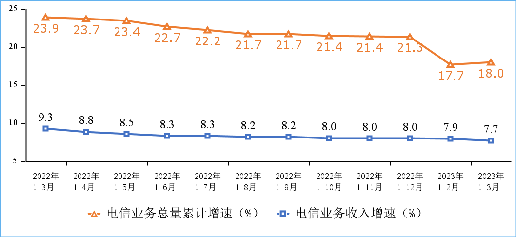 一季度通信业整体运行平稳 电信业务收入、总量同比分别增长7.7%和18%