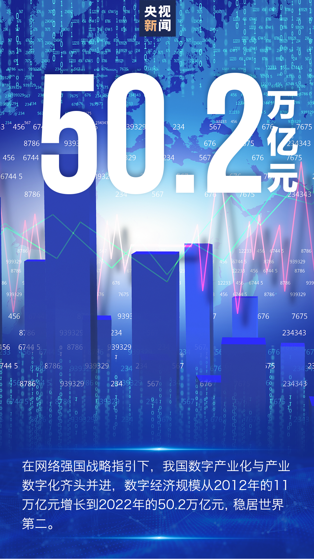在网络强国战略指引下,我国数字经济规模达50.2万亿元,稳居世界第二;移动支付年交易规模527万亿元,居全球第一;5G基站达284.4万个,已建成全球最大规模的光纤宽带和5G网络。