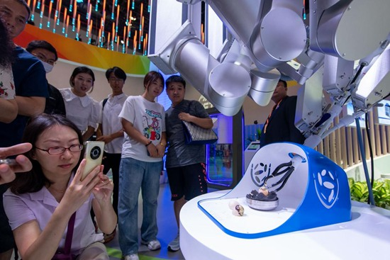 9月2日,在服务贸易及服务业扩大开放成就展上,手术机器人吸引了众多观众驻足。人民网记者 翁奇羽摄