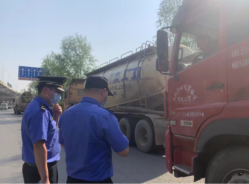 市城管执法督察总队开展治超联合执法现场。见习记者 臧诗琴 摄