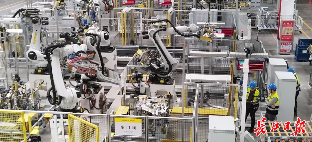 路特斯武汉智能工厂焊装车间车门总成生产区域,机器人正在进行无火花焊接工序。长江日报见习记者王双双 摄