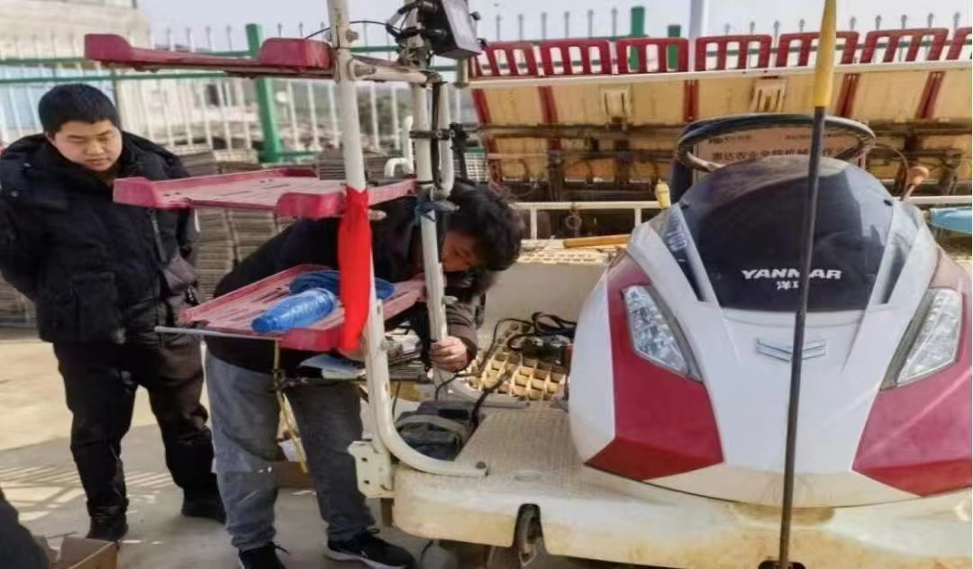谢凯正为插秧机安装调试北斗农用智能监测终端