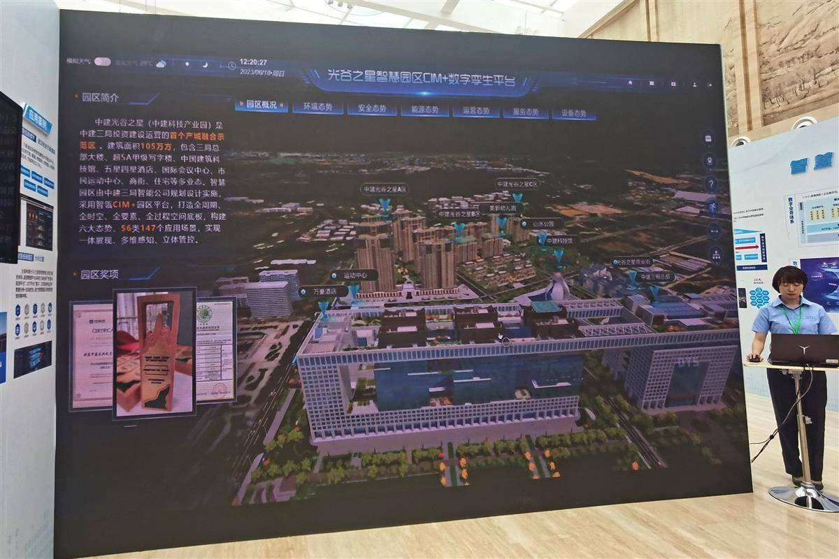 “绿化带哪里需要修剪了,水电气能耗如何,道路堵不堵,一目了然。”大会现场,中建三局数字工程公司开发的光谷之星智慧园区CIM+数字孪生平台引起参观者围观。