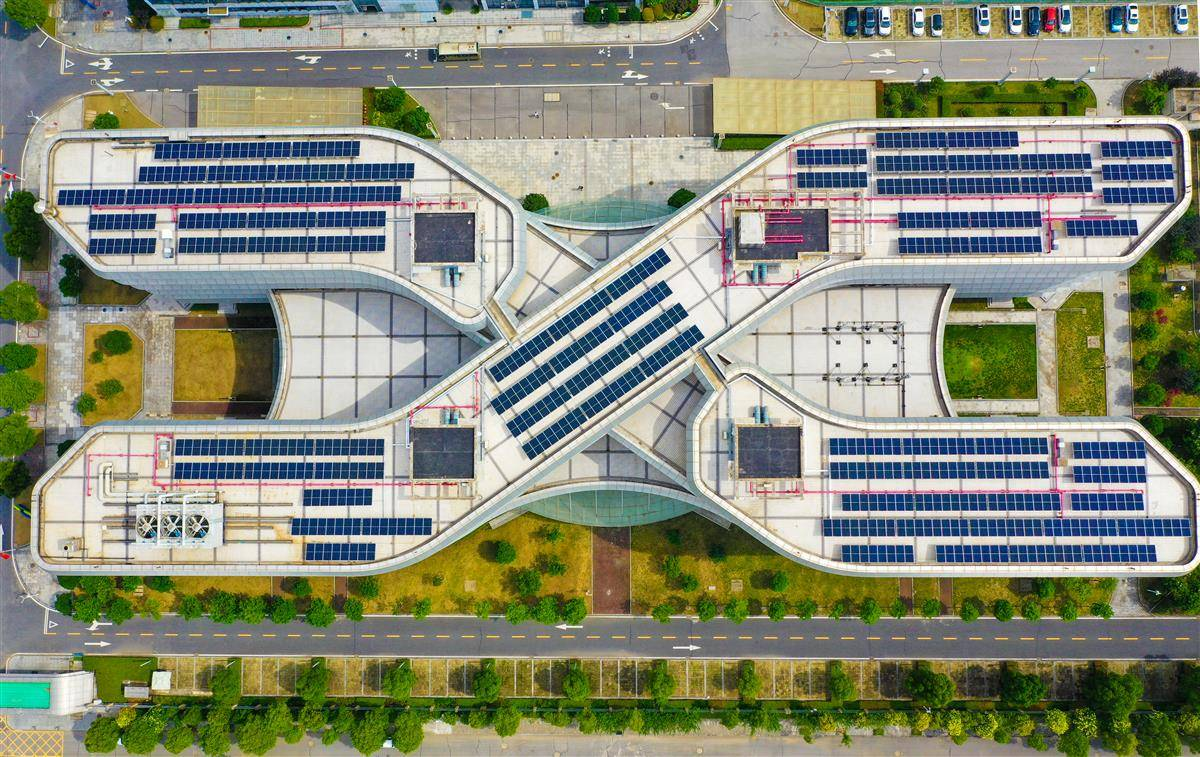 6月8日,襄阳高新区移动云计算中心屋顶光伏发电系统正在工作中。