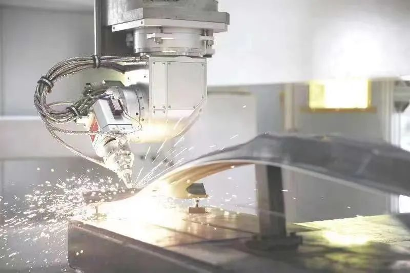 ▲光谷是全国最大的激光设备研发、生产基地之一。图为华工科技自主研制的三维五轴激光切割机正在加工汽车车身。