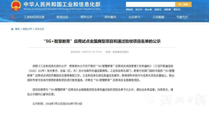 湖北日报讯(记者吴文娟)近日,工信部网站公示“5G+智慧教育”应用试点全国典型项目和通过验收项目名单,湖北3个项目入选。