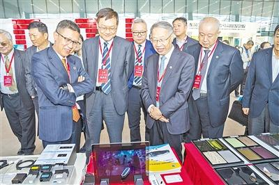 在汽车产业技术与产品对接会展区,海峡两岸嘉宾观看合资企业产品展示。(湖北日报全媒记者 魏铼 摄)