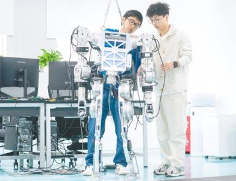 连日来,武汉格蓝若精密技术有限公司实验室,技术人员在组装调试智能人形机器人。 (湖北日报全媒记者 魏铼 摄)