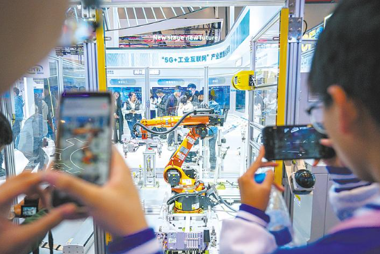 2024中国5G+工业互联网大会成果展示区的5G+工业智能机器人。(湖北日报全媒记者 魏铼 摄)