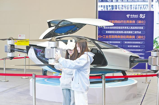 2024中国5G+工业互联网大会成果展示区的5G飞行汽车。(湖北日报全媒记者 魏铼 摄)