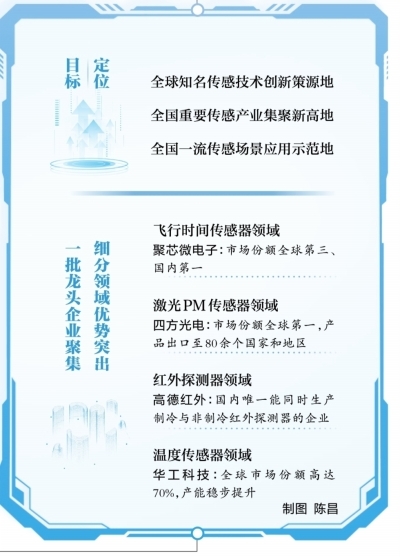行动方案中明确提出“三个地”的目标定位:全球知名的传感技术创新策源地、全国重要的传感产业集聚新高地、全国一流的传感场景应用示范地。